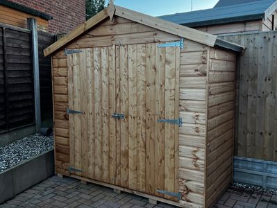 The Apex Tool Stores are 6' 6" to the ridge and 5' 4" to the eaves, this offers extra headroom compared to the Pent Toolstore.
