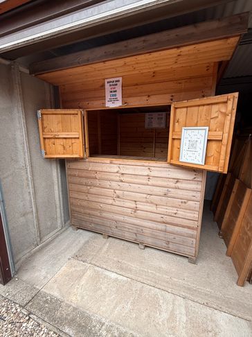 6' X 6' Bar with 3'6" wide x 2' High front side hung shutters, Stable Door, Roof with 3" x 2" framing,1'2" Overhang & 6' x 1'2" Wide Bench.