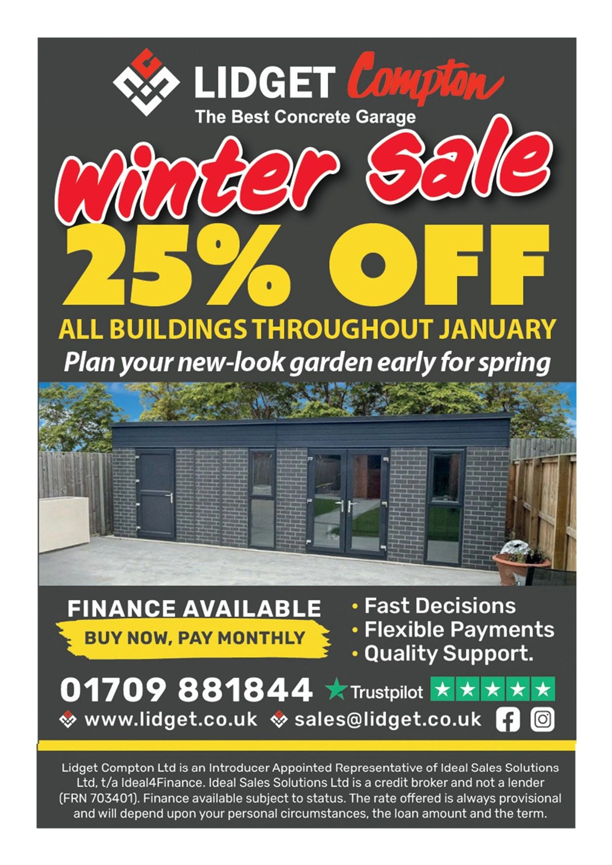 Latest offers available on Lidget Comptons entire range of Concrete Garages, Garden Rooms, Workshops & Sheds until 31st January 2026.