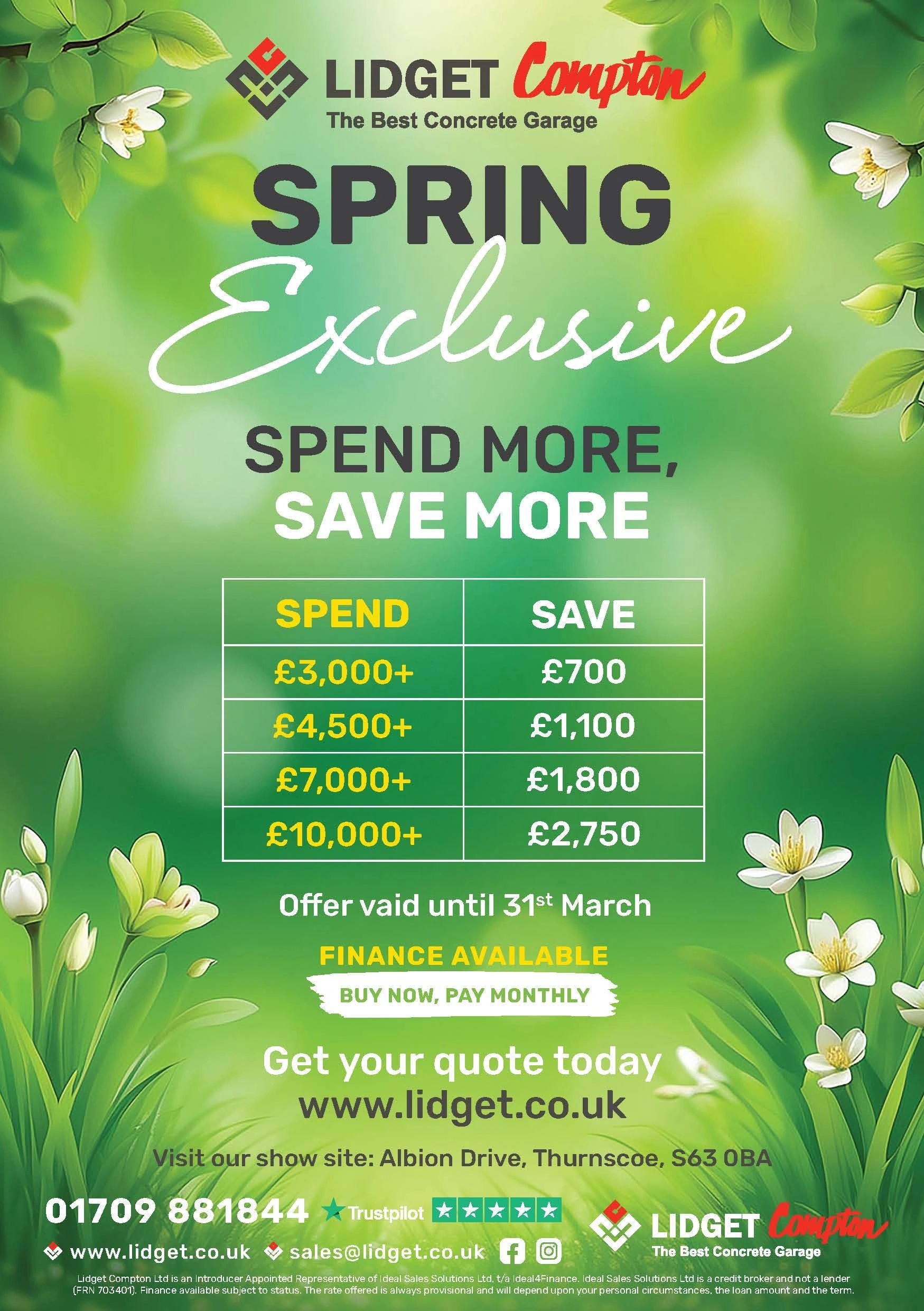Latest offers available on Lidget Comptons entire range of Concrete Garages, Garden Rooms, Workshops & Sheds until 31st March 2026.