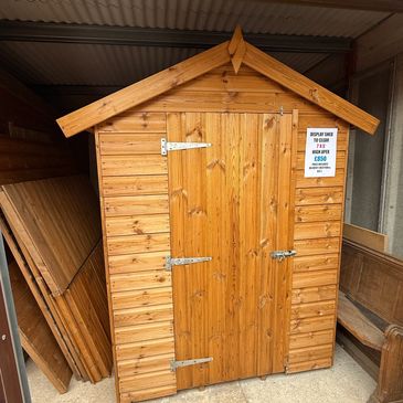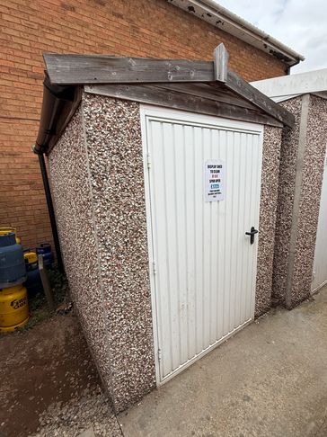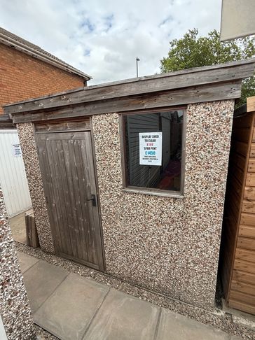 8 x 6 Spar Apex Concrete Shed, including 4' wide white Steel Door, no windows & guttering to both sides with down pipes. Would be great for motorbike storage with the extra wide door.